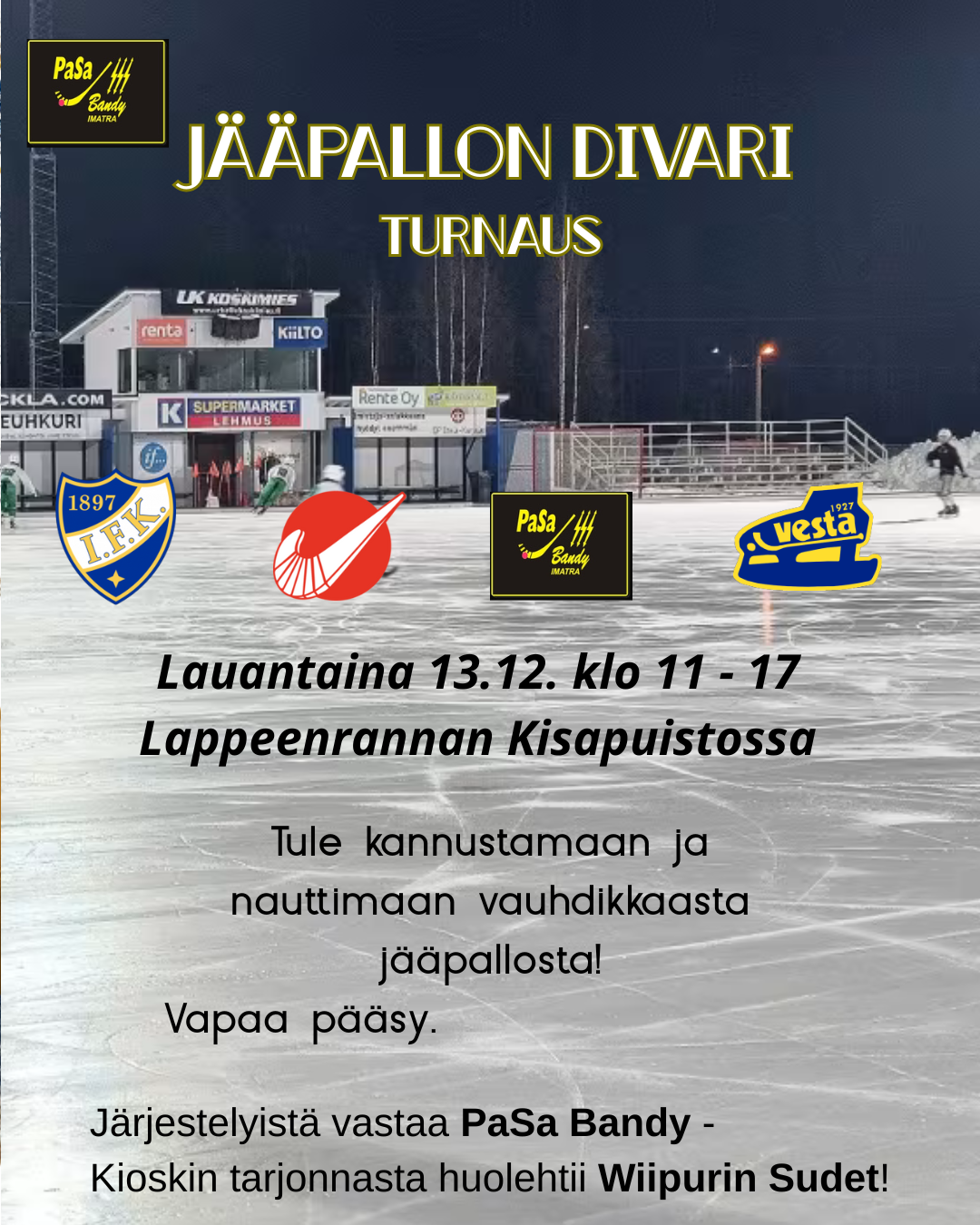Jääpallokoulut alkavat taas syksyllä 2024. Lappeenrannan Kisapuistossa aloitetaan jo 27.8. https://wiipurinsudet.fi/kotisivukone/jaapallokoulu/ ja Imatran jäähallissa sunnuntaina 22.9. klo 9.00 -10.00…
